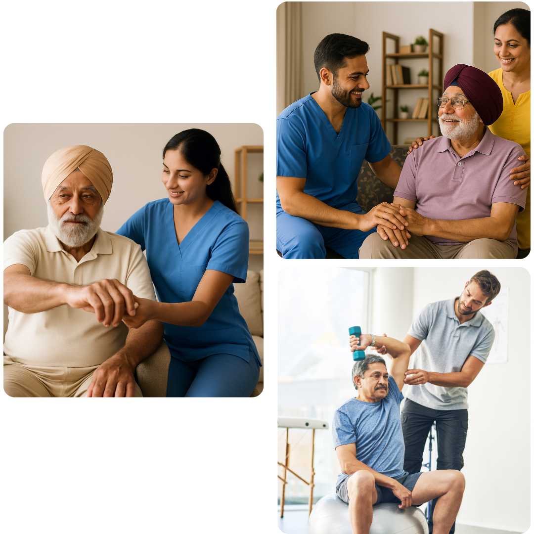 Our Physiotherapy Services help patients regain strength, mobility, and independence—right from the comfort of their homes. Whether recovering from surgery, injury, stroke