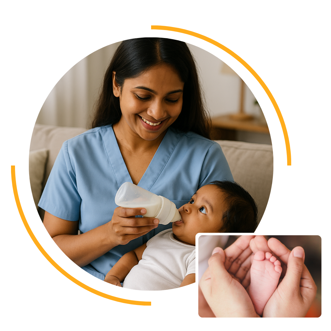 At Sehnaaz Home Care Agency, we provide professional baby care services to ensure your little one receives the best care, comfort, and attention they deserve.